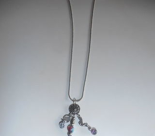 Très joli collier, en métal argenté inoxydable, composé d'une jolie chaine d'une longueur de 41 cm, chaine agrémentée d'une jolie breloque et de petits motifs suspendus. Exc