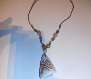 Très joli collier, en véritable coquillage, cordon agrémenté de perles, chainette pour modifier la longueur du collier, taille du coquillage : 4 cm hauteur x 2,5 cm diamètre.
