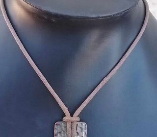 Chaîne cordon fantaisie de couleur Beige Foncé avec son pendentif rectangulaire... * Pendentif de 2,4 x 3 cm... Emaillé au reflet Vert (Voir Photo n° 2) * Type de fermoir... Mo