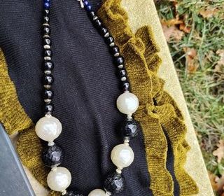 COLLIER PERLES FANTAISIE NOIR & BLANC