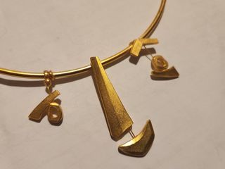 Très rare et superbe Collier rigide ras-de-cou Visage Siglé LACROIX Dim extérieure du jonc support = largeur 15 x prof 13 cm env Motifs (5 cm env pour le plus long) glissant