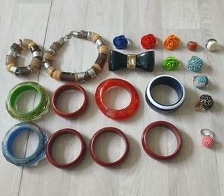 Bonjour, je vend des bracelets, des bagues et un collier. Tout est en bon état et propres. Prix : 5 euro le tout sinon 0,25 ct l'unité. Pour plus de photo n'hésitez pas a me