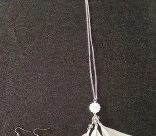 Collier en Métal Argenté avec ses 4 "brindilles"- Neuf * Collier en métal argenté avec ses perles en plastique noir, ses 4 "brindilles" mobiles et son mousqueton- longueur= 2
