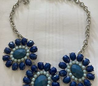 Beau collier fantaisie 3 cabochons entourés de 2 rangs de pierres
