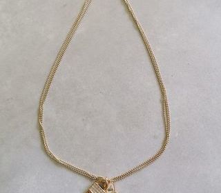 Collier doré femme en acier inoxydable, avec zircon, 2 pendentifs, mousquetons, 45cm de long - DKNY - Etat neuf Prix 30 €