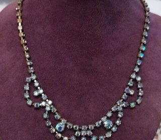 SUPERBE-COLLIER -VINTAGE- EN MÉTAL DORE, STRASS IRISES AURORES BORÉALES Superbe collier vintage en métal doré et strass irisés il mesure 45,5 cm en longueur, hauteur