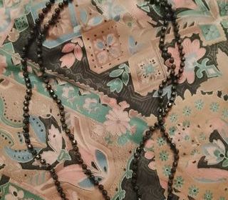ce collier en perles de plastique roses sur métal argenté est en bon état.