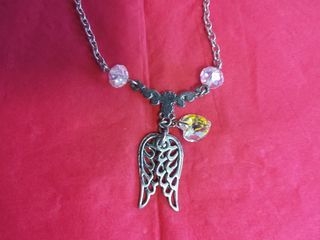 collier chaînette avec ange, ailes d'ange, coeur et 2 petites perles - longueur 26 cm - poids 9 g très bon état 5€ + frais d'envoi éventuellement