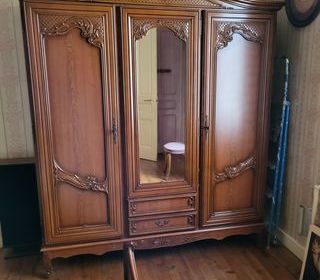 Vends chambre à coucher complète en merisier. composée d'un lit bateau, 2 chevets, une armoire et une commode. photo du lit sur demande car déjà démonté.