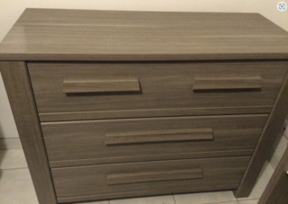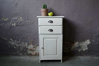 Petite commode ou meuble de chevet , ancienne En chêne , prévoir une remise en peinture 3 tiroirs, 1 "niche" dimension hors tout 50 long *30 larg *75cm haut A retirer à mon do