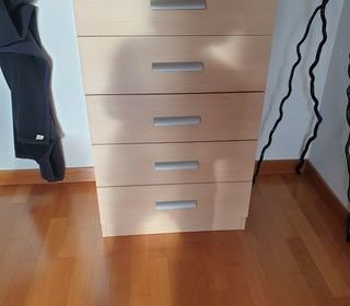 Vend une commode en bois plaqué en bon état au prix de 45 euros.