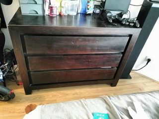 commode en bon état bois marron. 3 tiroir. Merci pas de échange pas de remboursement
