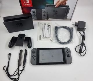Bonjour, nous mettons en vente cette console Nintendo Switch (model HAC-001) grise en boite, complète vendu d'occasion. État : Bon, testé et fonctionnel (présence de légères trace
