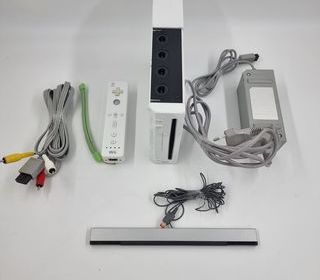 Bonjour, nous mettons en vente cette console Nintendo Wii blanche Model RVL 001 vendue complète avec câbles/capteur et 1 manette (manque un cache sur le dessus de la console). Éta