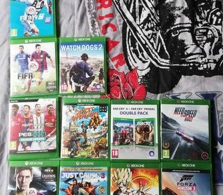 Vends x box one avec 11 jeux et deux manettes une et un peu abîmée mais fonctionne quand même voir photo.