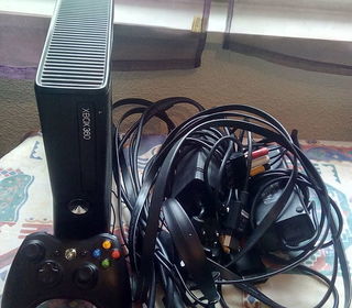 Xbox 360 Slim glitchée avec DD d'origine de 250Go très bon état + 25 jeux + 1 manette sans fil + 1 câble HDMI + 2 blocs d'alimentation + 2 prises péritel + 1 câble coaxial RCA + 1