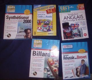 vieux jeux pour PC - synthétiseur 2000. CD + notice : 8€ - vocabulaire anglais (apprentissage et révision) + prof d'anglais + Super prof d'anglais, 3 CD : 10€ - billard 3D : 5€