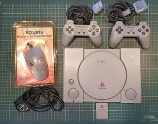 Console Sony PlayStation 1 - PS1 SCPH-5552 PAL + 2 manettes + Souris + 9 jeux : - Medievil - Medievil 2 - Oddworld l'Odyssée d'Abe - Oddworld l'Exode d'Abe - Resident Evil (VF