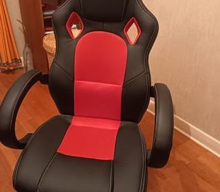 FAUTEUIL GAMER NOIR/ ROUGE Matière : revêtement en PU. Dim.:L.64xP.70xH.110/120cm Réglable en hauteur A prendre sur place, paiement en espèces, merci
