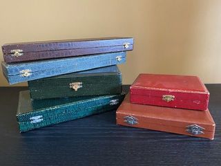 Boîtes vides pour argenterie Boîtes anciennes pour le rangement de l'argenterie. -1) Boîte rouge intérieur bleu, fermoir fonctionnel dimensions : 16,5x14 cm, hauteur 4 cm