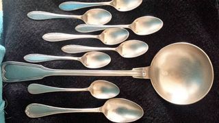 Une louche, sept petites cuillères, et une grande cuillère en argent. 30.00 euros ou faire offre A prendre sur place, pas d'envoi possible