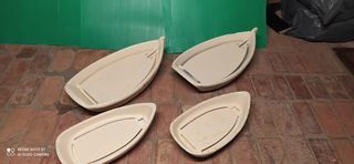 Bonjour je me sépare pour des particuliers ces 4 barques pour faire du traiteur chez vous :moricettes , assortiment de sandwichs . ,coupe de fruits , assortiments de fromages ,ch