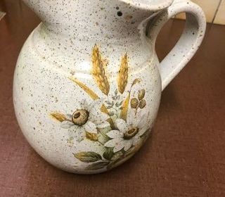 Vends pichet ( poterie artisanale fait main) Contenance 1.5 litres Très bon état ( petite ébréchure photo 2 ) Prix : 13.00 euros