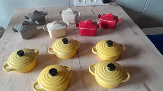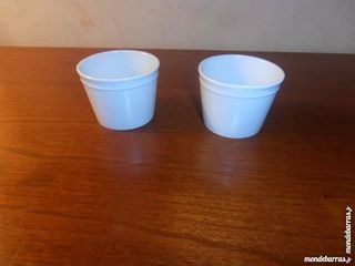 petites marmites ; cuillères pour présentation amuse-bouche ou entrées en faïence , jamais servies . dimension sur photos . , encore dans cartons .