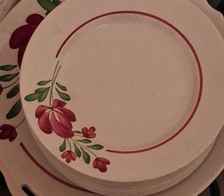 12 assiettes + plat rond peint main K et G Luneville