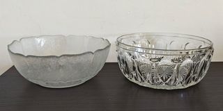 Très grand saladier ancien en verre à décor taillé ou pressé . Intérieur lisse, extérieur avec de beaux dessins géométriques en relief. Verre épais et lourd, une belle qualité ty