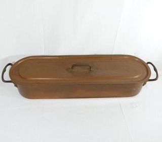SAUMONIERE Ancien Plat à Poisson CUIVRE Étamé Et FER forgé Cuisine Art Populaire