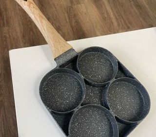 Poêle à pancake, oeuf, viande Tout feux dont induction - Anti adhésive - Dimensions : 18.5 x 18.5 cm - Diamètre rond 9 cm Longueur totale 36 cm avec le manche Prix neuf 30