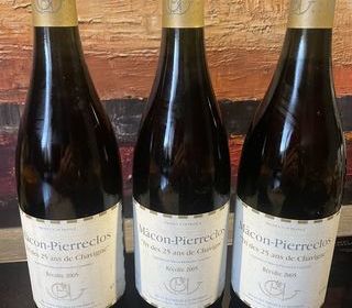 Vends lot de Lot de 3 Bt MACON PIERRECLOS Tris des 25 ans de Chavigne 2005 Toujours conservée en cave avec température et hygrométrie contrôlée Peut se conserver jusque 2030 (s