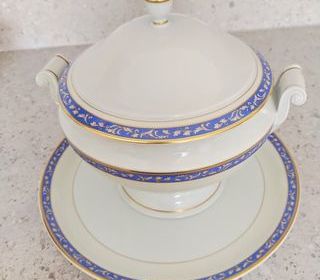 Véritable porcelaine de SOLOGNE 24 assiettes plates, 12 assiettes creuses, 12 assiettes à dessert, 1 saucière, 1 plat long, 1 plat creux, 1 plat à tarte, 1 légumier, 1 soupière,