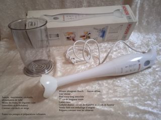 Mixeur plongeant Bosch _ 300 Watt _ Une vitesse _ Pied extra-long amovible _ 37 cm de longueur totale _ Lames inox _ Gobelet doseur : 10 cm de diamètre et 15 cm de haut