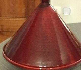 Plat à Tajine, diamètre 34 cm, rouge émaillé, très bon état.