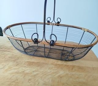 Coloris: Rotin Naturel et Métal noir Un panier en métal idéal pour mettre vos fruits sur votre plan de travail. La belle bordure en rotin vient embellir le produit et ajoute une