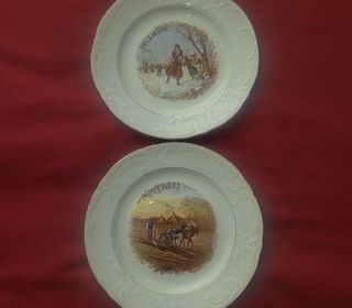 Après succession , vends cette belle suite de 12 assiettes issues de la Manufacture de Saint - Amand et Hamage . Elles représentent les douze mois de l'année et sont en très bon ét