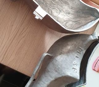 1 sabot complet et 1 demi sabot : Moules à glace en étain pour glacier ou collectionneur Poids environ : 5.400 kg. sans emballage. Prix net : 375 € Transport à la charge de l'ac