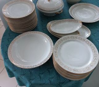 Service comprenant 24 assiettes plates 12 assiettes creuses 1 soupiere 1 saladier 2 raviers 2 plats ronds 1 plat ovale