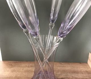 Vends 6 verres de champagne à tige avec son seau légèrement teinté jamais servis toujours dans l'emballage d'origine