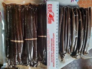 Nous avons ramené de la vanille fraîche de notre séjour à Madagascar, elle mesure entre 17 et 19 cm et pèse entre 8 et 12 grammes la gousse. Nous la vendons 0,75 euros la gousse
