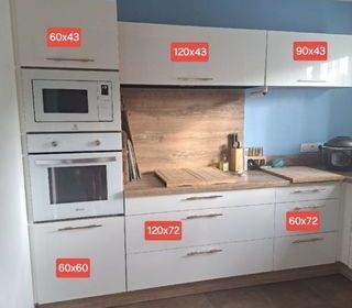 Bonjour, Nous vendons l'ensemble des façades blanches effet peau d'orange blanc de marque Cuisinella. D'occasion