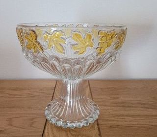 Coupe à fruits avec motifs de feuilles et raisins, en verres Hauteur : 20 cm Diamètre 20 cm En très bon état