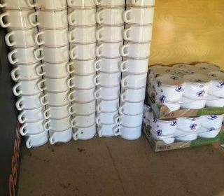 Lot de 74 tasses café ou thé empilables neuves. Idéal Traiteurs, banquets, etc....