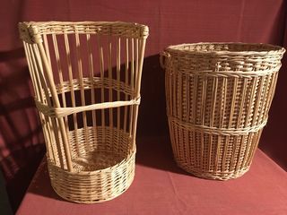 Particulier vend lot de 2 paniers à pain professionnels neufs en vannerie. Huche diamètre 32 cm, hauteur 50 cm, Panier diamètre 40 cm, Hauteur 50 cm. Prix: 50 euros. Emporté. Rép
