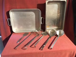 Particulier vend lot matériel cuisine neuf comprenant : 1 bac inox gastro 1/1 H. 12cm. 1 plaque à rôtir alu extra fort anses tombantes. Intérieur : 50cm x 40cm x 8cm. 1 araigné