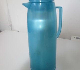 Bouteille thermos 1/2 litre. Bouteille plastique, contenant démontable. Hauteur 25 cm, diamètre extérieur 9 cm.