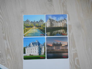 lot de 4 sous-verre motifs Châteaux, neufs. En plastique plastifié pour un lavage facile. Dimensions : 10 cm X 10 cm. Marque VITRINE MAGIQUE