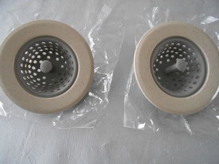 Lot de 2 bouchons d'évier avec filtres pour déchets, neufs. Couleur : grise Qualité : * Contour en plastique rigide * La partie avec les trous est en silicone. Ils